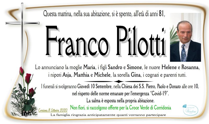 Pilotti Franco Pilotti Franco Settembre 8, 2020 Verdini Onoranze Funebri Settembre 8, 2020 0 Commenti 0 Likes